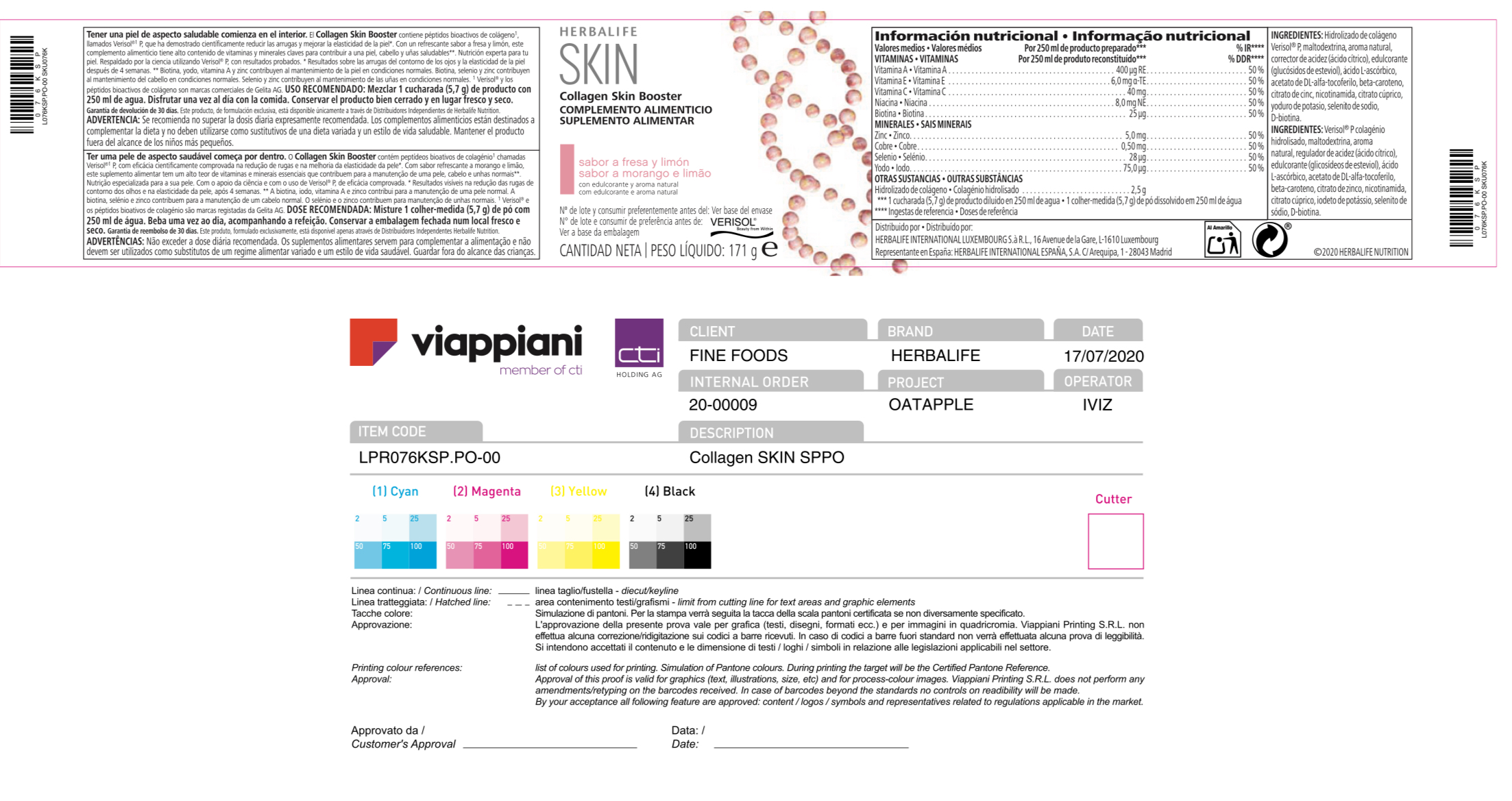 Es un complemento alimenticio con un refrescante sabor a fresa y limón. Contiene péptidos bioactivos de colágeno*, llamados Verisol®* P, que ha demostrado científicamente que reduce las arrugas del contorno de los ojos y mejora la elasticidad de la piel después de 4 semanas. Este producto tiene alto contenido en vitaminas y minerales para contribuir al bienestar de la piel, el cabello y las uñas**.