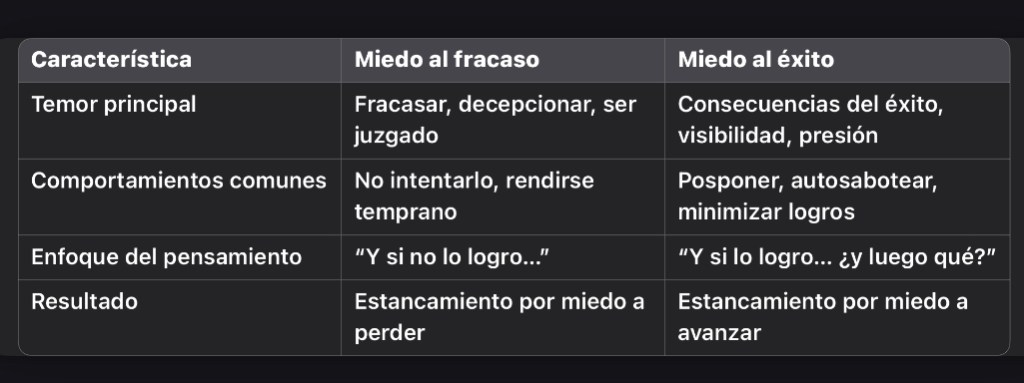 El miedo al éxito es una forma de temor inconsciente que surge ante la posibilidad de lograr lo que se desea. A diferencia del miedo al fracaso, que se relaciona con la vergüenza, la crítica o el error, el miedo al éxito se vincula con las consecuencias de alcanzar una meta.