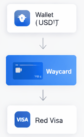 Waycard es una tarjeta compatible con la red Visa que permite gastar fondos que se encuentran en una wallet autocustodiada. A diferencia de las tarjetas tradicionales, Waycard no requiere que el usuario transfiera sus fondos a un banco o a un custodio centralizado.
